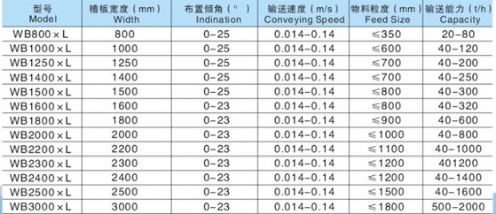 ③板式喂料機技術(shù)參數(shù)